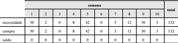 Considerando a tabela acima, que ilustra o perfil de reposição de determinado item de consumo, julgue os itens que se seguem.