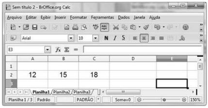 Com base na figura acima apresentada, que mostra uma janela do BrOffice Calc, julgue o próximo item.