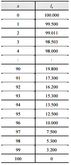 A tabela precedente mostra uma tábua de mortalidade para