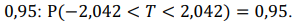 Com base nessas informações, julgue o próximo item, considerando uma variável T, com média nula e desvio padrão unitário, definida por uma distribuição t de Student com 30 graus de liberdade, que tenha o seguinte intervalo com probabilidade de