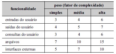 de pontos por função (a partir da maior ou menor complexidade