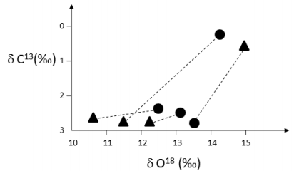 estáveis e coexistentes (δ O18 e δ C13) de uma área de estudo
