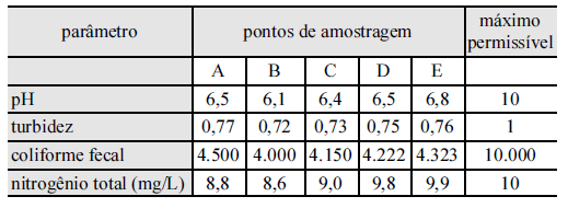 fecal (NMP/100 mL) e nitrogênio total foram avaliadas nas