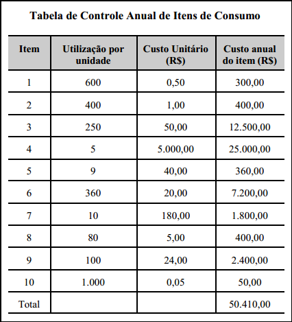 Matéria/Assunto: Administração > Administração de Recursos Materiais / Classificação de materiais / Metodologia de Cálculo da Curva ABC