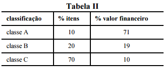 Matéria/Assunto: Administração > Administração de Recursos Materiais / Classificação de materiais / Metodologia de Cálculo da Curva ABC