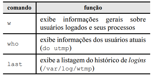 respectivas funções usados no sistema Linux para a verificação
