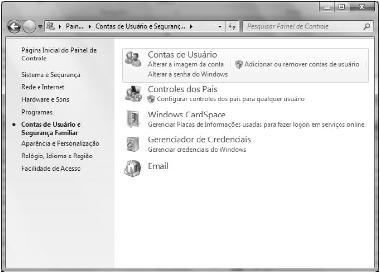 Tendo como referência a figura acima, que ilustra a tela de gerenciamento de contas do sistema operacional Windows 7 Professional, julgue